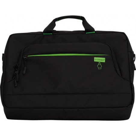 Sacoche pour ordinateur portable Q-CONNECT® 17,2' fabriquée avec des bouteilles en PET recyclées (rPET), compartiment matelassé pour ordinateur portable jusqu'à 17,2', poche frontale zippée pour bloc-notes jusqu'à A5, compartiment principal, petites poches pour le smartphone et accessoires, avec bandoulière réglables et amovible, passant au dos, 2 poignées. Dimensions: L 460 x H 340 x P 65 mm. Poids: 510 g.