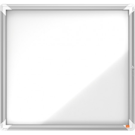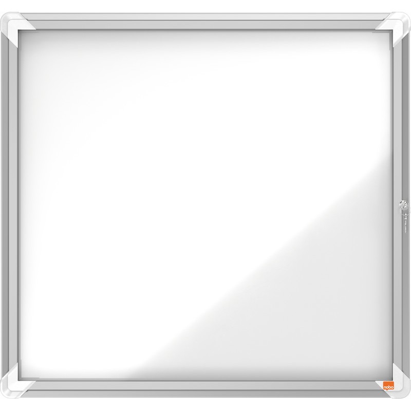 Vitrine pour utilisation à l'intérieur NOBO® Premium Plus vitrine verrouillable pour zone intérieure avec cadre en aluminium, serrure de sécurité à 2 clés, porte à rabattre en verre de sécurité de 4 mm, panneau arrière métallique magnétique, permet des inscriptions au moyen de marqueurs effaçables à sec, profondeur intérieure utile 18 mm, kit de montage mural inclus.