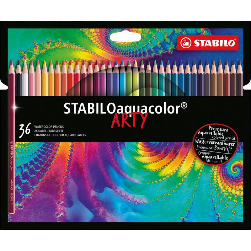 Crayons de couleur STABILO® aquacolor® Arty crayon de couleur pour le dessin artistique, soluble à l'eau, couleur résistante à la lumière, pouvoir couvrant exceptionnel, mine fine Ø 2,8 mm, idéale pour le dessin de détail, pratiquement incassable, pour artistes, illustrateurs, graphistes et architectes. Durabilité eco:plus: emballage respectueux de l'environnement.