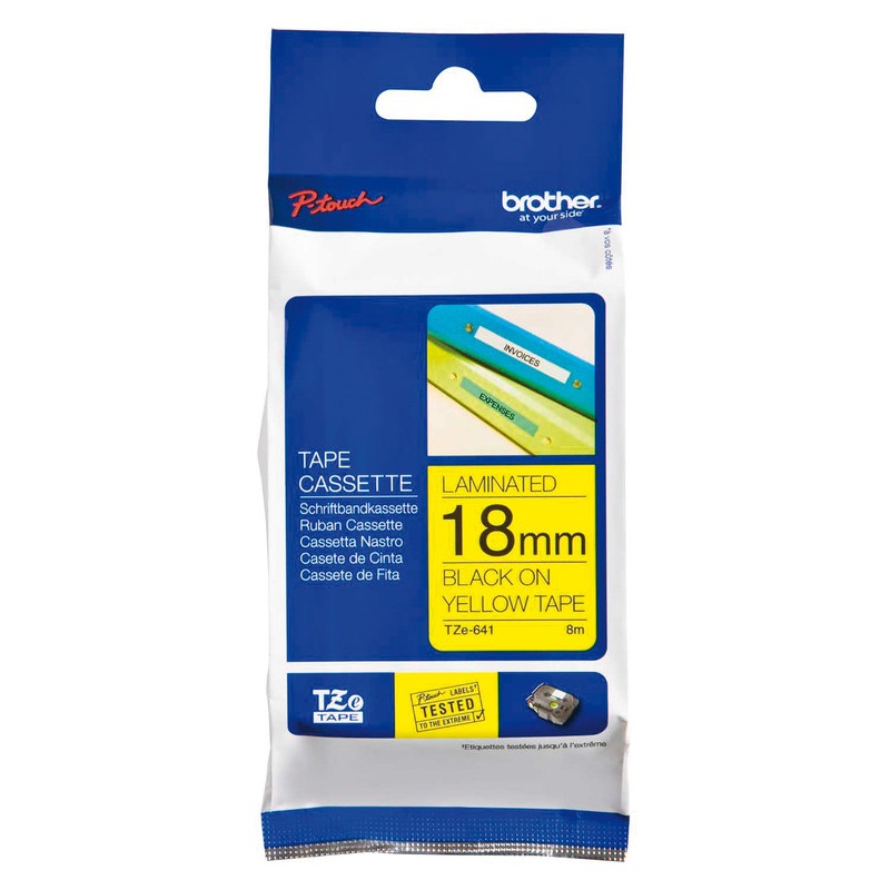 Ruban BROTHER P-touch TZe laminé résiste à l'essuyage, étanche et antirayures, résiste aux températures extrêmes et aux UV, pour la maison, le bureau et le lieu de travail. largeur 18 mm, longueur 8 m