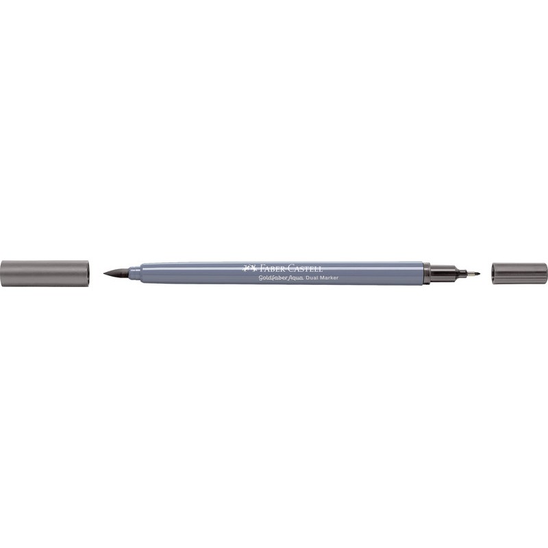 Dual Marker FABER-CASTELL Goldfaber Aqua feutre à 2 fonctions, avec une pointe fine 0,6 mm pour les contours et les détails et une pointe pinceau conçue pour les traits fins, larges et les surfaces pleines, encre à base d'eau, capuchon dans la couleur de l'encre, aquarellable, inodore, sans acide, PH neutre, non rechargeable. Durabilité eco:plus: durée de vie du produit prolongée, energie récupérée, composant recyclé, teneur en déchets recyclés avant utilisation max. 51%, réduction des déchets.
