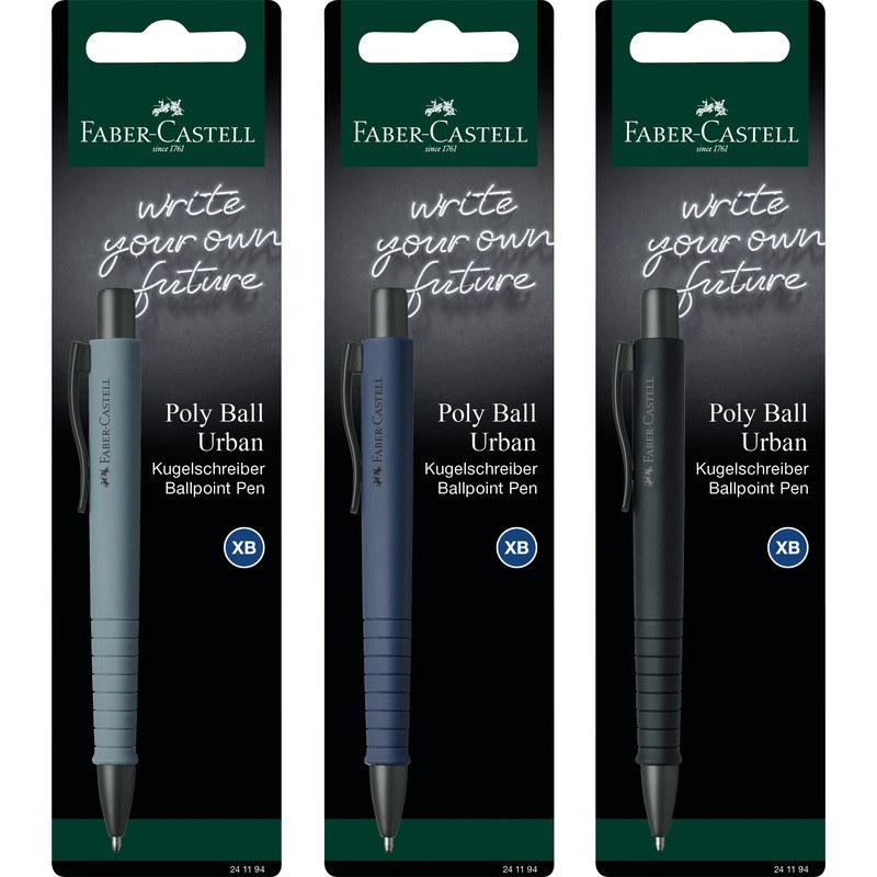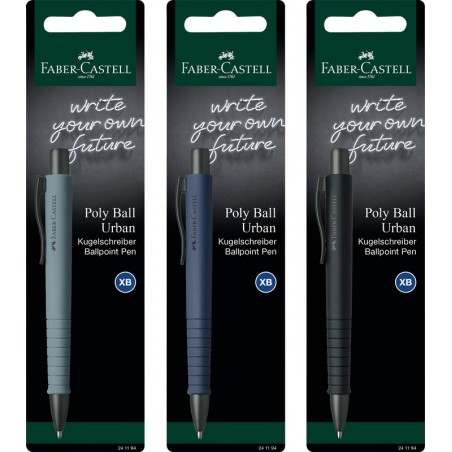 Stylo à bille FABER-CASTELL Poly Ball XB Urban forme triangulaire ergonomique, clip en métal, rétractable, recharge grande capacité XB, infalsifiable, couleur de l'encre bleue, rechargeable.