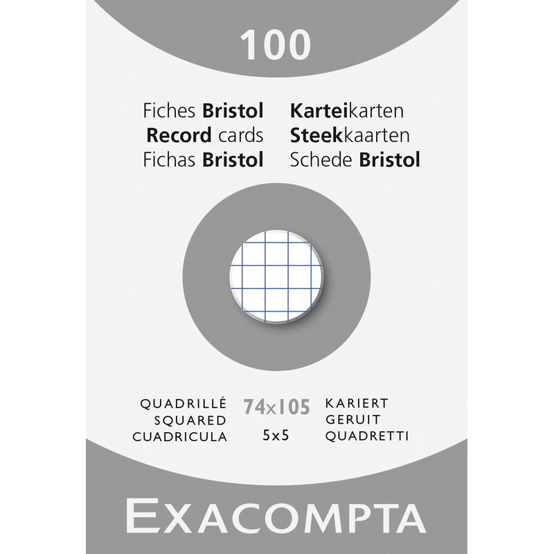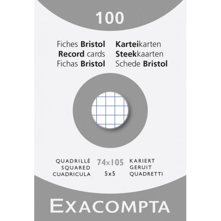 Cartes-fiches EXACOMPTA quadrillées en carton, 205 g/m2. Emballage de 100 pièces. Durabilité eco:plus: Certification: PEFC.