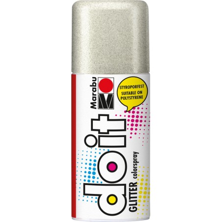 MARABU Colorspray do it Glitter effets pailletés fascinants, transparent, sèche rapidement, résiste à l'essuyage, partiellement résistant à l'eau, bonne résistance à la lumière, résistant au polystyrène sans apprêt, convient pour le carton, le bois, le plastique, le polystyrène expansé, le verre, la pierre, le métal, l'argile, etc. Bombe de 150 ml. Durabilité eco:plus: recyclable, emballage respectueux de l'environnement.