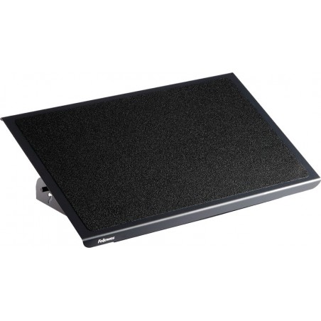 Repose-pieds FELLOWES® Professional Series(TM) en tôle d'acier robuste, surface antidérapante, hauteur réglable sur 3 positions entre 105 et 135 mm, angle facilement ajustable jusqu'à 25°, plateau L 560 x P 350 mm. Poids: 5,05 kg. Garantie: 5 ans.