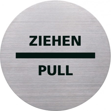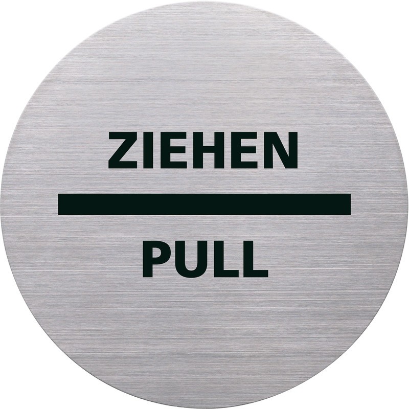 Pictogramme mural/porte HELIT the badge en acier inox brossé, impression en noir, autocollant, avec bande adhésive, Ø 115 mm. Blister de 1 pièce. Durabilité eco:plus: durée de vie du produit prolongée, recyclable, teneur en déchets recyclés après utilisation max. 100%, réduction des déchets.