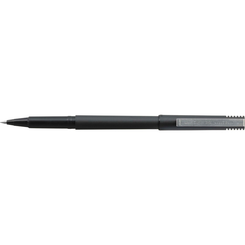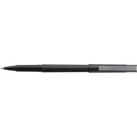 Roller UNI-BALL micro corps en matière plastique noir, pointe en acier inox, clip chromé, encre pigmentée et résistante à l'eau, extrémité du corps et capuchon dans la couleur de l'encre, non rechargeable, largeur de trait 0,3 mm.