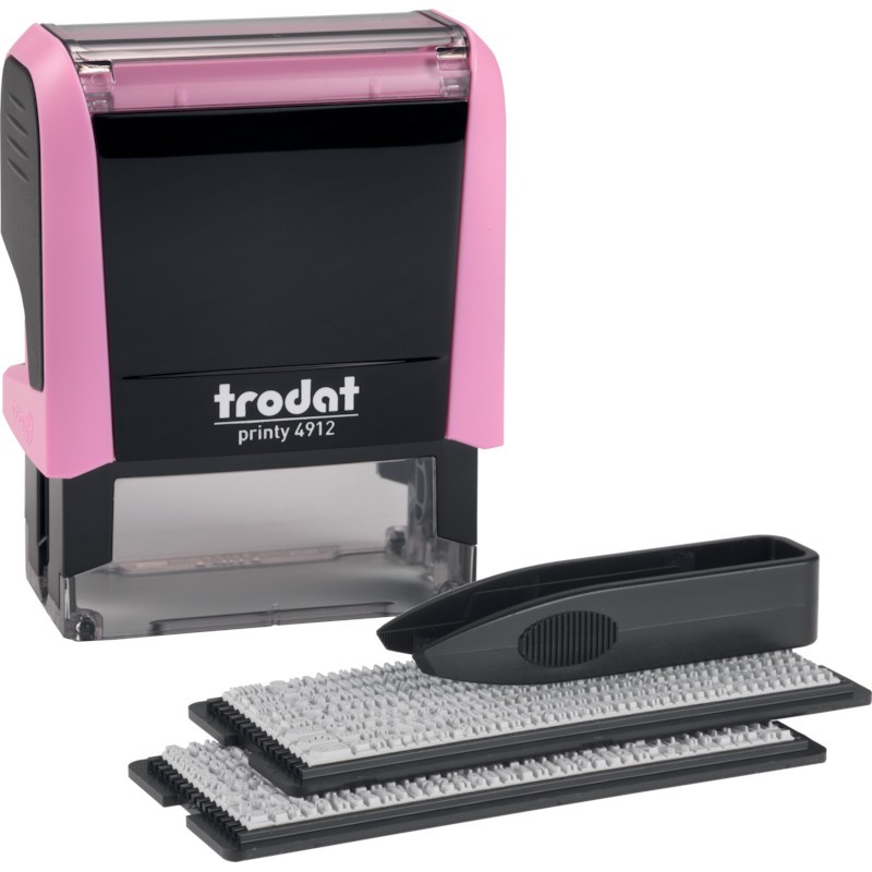 TRODAT® Typomatic 4.0 Printy(TM) Pastell Edition, timbre à encrage automatique à composer soi-même production CO2 compensé de série, avec coussin d'encrage TRODAT® interchangeable encré noir. 4912 typo, plaque 47 x 18 mm texte max. 4 lignes. 1 jeu de caractères en caoutchouc hauteur 3 mm (336 caractères) et 1 jeu de caractères hauteur 4 mm (288 caractères). Coussin 6/4912.