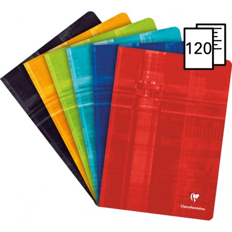 Cahier CLAIREFONTAINE avec réglure couverture laminée, papier blanc, 90 g/m2, couleurs assorties. Durabilité eco:plus: recyclable. Certification: PEFC.
