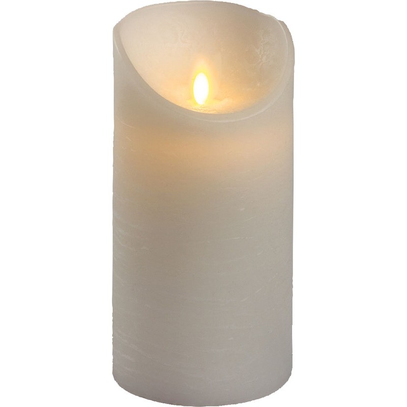 Bougie cylindrique à LED XMAS KING® en cire, optique rustique, LED blanc chaud, vacillement naturel de la flamme, fonction marche/arrêt ou minuterie 6 à 18 h, destinée à une utilisation à l'intérieur, alimentation par 3 piles AAA (non fournies). Dimensions: Ø 75 mm.