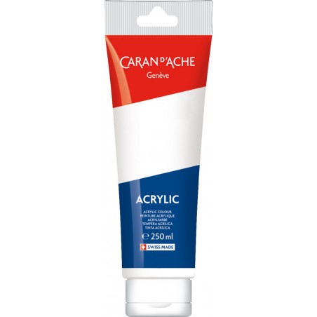 CARAN D'ACHE Acrylic couleurs acryliques lumineuses, ne craquellent pas, ne changent et ne se matifient pas après séchage, résistantes à la lumière, miscibles à l'eau, forte concentration pigmentaire, pour les surfaces lisses et texturées telles que la toile, tissus, papier, carton, verre, plastique, métal, bois, etc., s'appliquent au pinceau ou à la spatule. Tube de 250 ml.