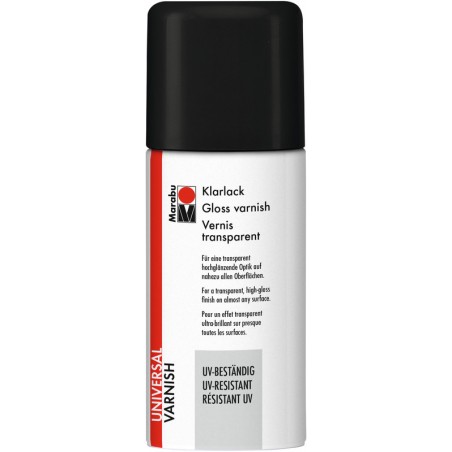 Vernis anti UV transparent MARABU vernis incolore ultra brillant en bombe aérosol, sèche rapidement, résistant à l'eau et aux UV, pour papier, carton, photos, métal, bois, verre, etc., convient pour le polystyrène expansé. Durabilité eco:plus: recyclable, emballage respectueux de l'environnement.
