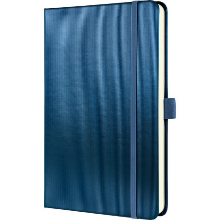 Carnet SIGEL Conceptum Hardcover Metallic Edition couverture Softwave, papier chamois, 80 g/m2, 194 pages numérotées dont 20 feuilles perforées, index, 2 rubans marque-page, pochette de rangement avec étui pour 10 cartes de visite, Quickpocket, languette porte-stylo, fermeture par élastique, format A5. Durabilité eco:plus: recyclable. Certification: FSC.