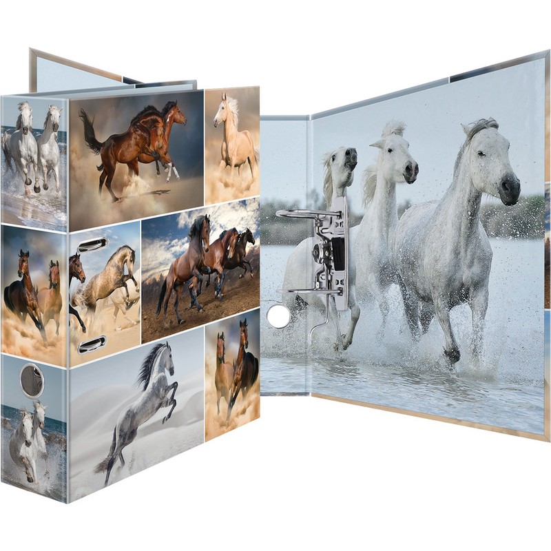Classeur HERMA Animals en carton solide, imprimé à l'intérieur et à l'extérieur sur toute la surface, avec oeillets et trou de prise, mécanisme à levier, largeur du dos 7 cm, pour format A4.