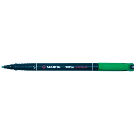 STABILO® OHPen universel permanent clip, stylo-feutre pour transparents, destiné à une utilisation universelle, car ce feutre convient à pratiquement toutes les surfaces lisses, non rechargeable. Durabilité eco:plus: emballage respectueux de l'environnement. superfin (S), largeur de trait env. 0,4 mm