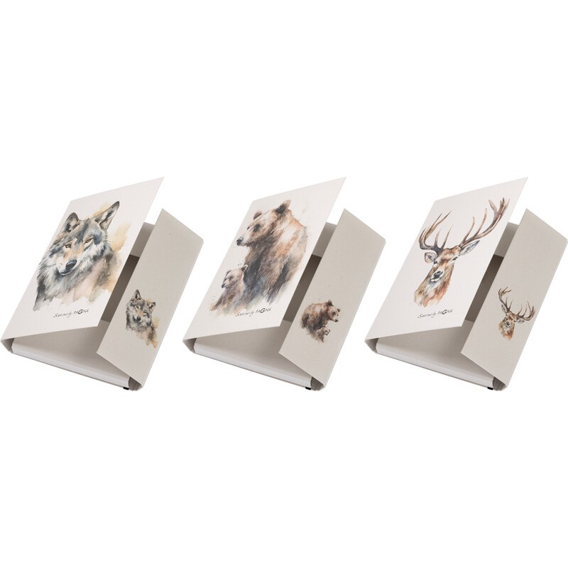 Boîte de collection PAGNA® Save me en carton recyclé, avec fermeture par élastique, capacité max. 200 feuilles, 3 motifs assortis, dans le style de la peinture à l'aquarelle, pour format A4. Dimensions: L 245 x H 335 x P 40 mm. Durabilité eco:plus: durée de vie du produit prolongée, emballage respectueux de l'environnement. No. 5
