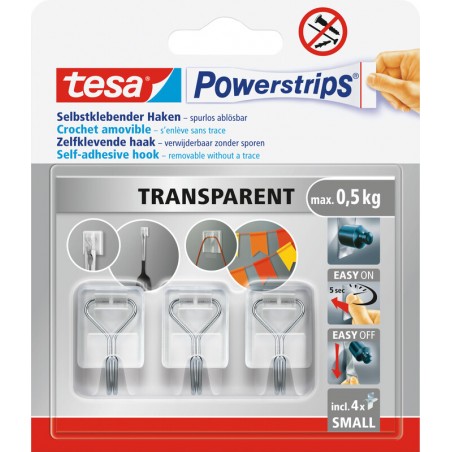 Crochets TESA® Powerstrips® Wired Small en PS, pour suspendre des objets légers sur des surfaces lisses et solides, se retirent sans laisser de traces, réutilisables avec une nouvelle Powerstrips®. Blister avec 3 crochets avec crochets en fil métallique amovibles et 4 Powerstrips®. supporte une charge jusqu'à 0,5 kg
