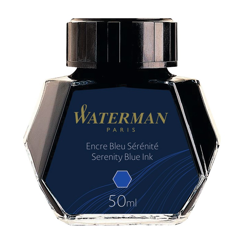 Encre pour stylos-plume WATERMAN convient pour les convertisseurs et les mécanismes à piston. Verre de 50 ml.