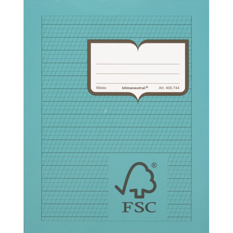 Cahier scolaire NATURA LINE certifié papier blanc, 90 g/m2, sans buvard, chaque réglure a sa propre couleur de couverture, climatiquement neutre. Durabilité eco:plus: recyclable. Certification: FSC. in-4° / E5 40 pages, format: 175 x 220 mm.