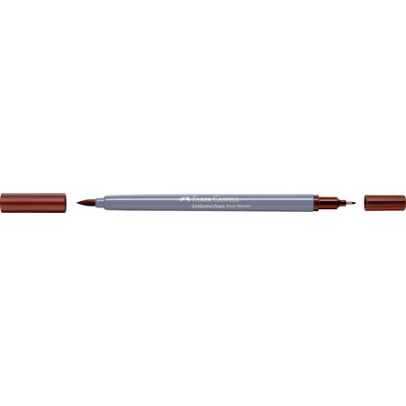 Dual Marker FABER-CASTELL Goldfaber Aqua feutre à 2 fonctions, avec une pointe fine 0,6 mm pour les contours et les détails et une pointe pinceau conçue pour les traits fins, larges et les surfaces pleines, encre à base d'eau, capuchon dans la couleur de l'encre, aquarellable, inodore, sans acide, PH neutre, non rechargeable. Durabilité eco:plus: durée de vie du produit prolongée, energie récupérée, composant recyclé, teneur en déchets recyclés avant utilisation max. 51%, réduction des déchets.