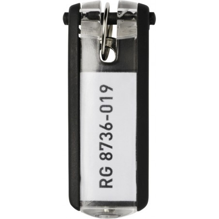 Porte-clés DURABLE Key Clip étiquette visible en permanence, la clé étant toujours à plat, une simple pression suffit pour ouvrir le porte-clés et retirer l'étiquette, compatible avec le système à clés Key Box Code 36, inscription facile avec le logiciel d'étiquetage gratuit Duraprint® sur www.duraprint.fr. Dimensions: L 24 x H 68 x P 15 mm. Emballage de 6 pièces. Durabilité eco:plus: recyclable, composant recyclé, teneur en déchets recyclés après utilisation max. 5%.
