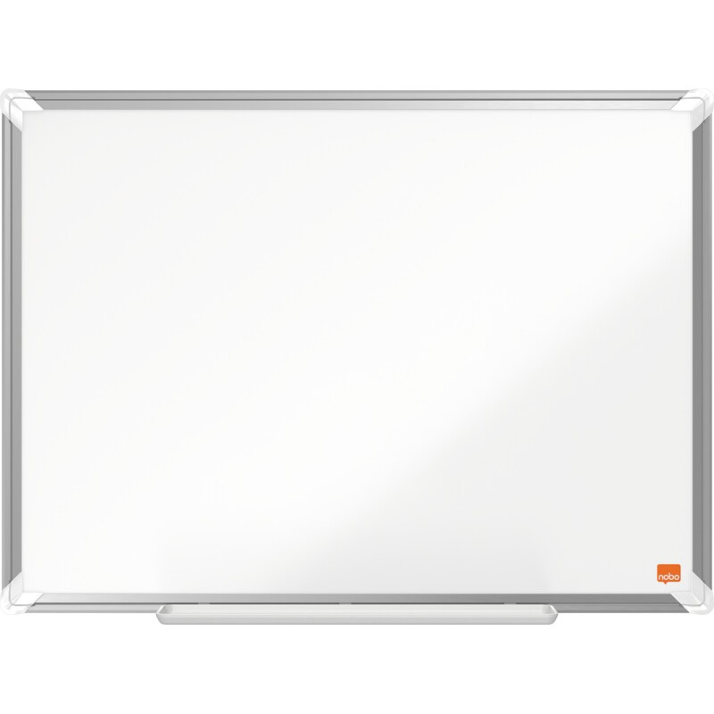 Tableau blanc NOBO® Premium Plus émaillé tableau blanc en émaillé, effaçable à sec et magnétique, avec cadre en aluminium, montage possible en format portrait ou paysage, destiné à un usage durable, livré avec auget porte-marqueurs amovible, marqueur NOBO® et kit de fixation. Garantie: 25 ans sur la surface du tableau dans des conditions normales d'utilisation.