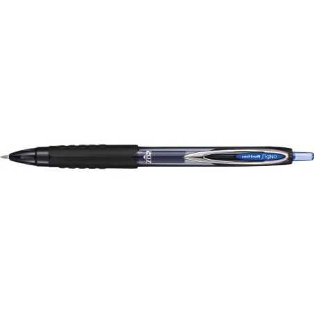 Roller UNI-BALL Signo 207 ECO fabriqué à 72% en plastique recyclé, corps en matière plastique noire, grip caoutchouc, clip en métal, rétractable, extrémité du corps dans la couleur de l'encre, encre résistante à l'eau, infalsifiable, séchage rapide, rechargeable, largeur de trait 0,7 mm. Durabilité eco:plus: composant recyclé, teneur en déchets recyclés avant utilisation max. 72%. Certification: Ecomark.