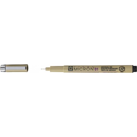 Stylo fibre SAKURA® Pigma Micron pour des dessins et esquisses précis, avec encre pigmentée résistante à la lumière et à l'eau, sèche rapidement, convient également au traçage à la règle et au pochoir, avec clip en métal, non rechargeable.