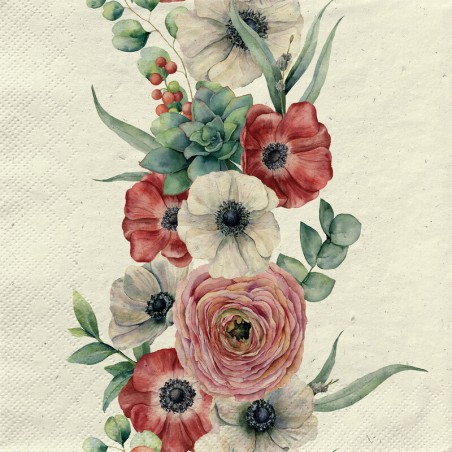 Serviettes FASANA magic moments en papier d'herbe en ouate de cellulose en herbe, 2 couches, pliage 1/4. Emballage de 20 pièces. Durabilité eco:plus: compostable, dégradable, énergie récupérée. Certifications: FSC, Nordic Ecolabel. format: 330 x 330 mm