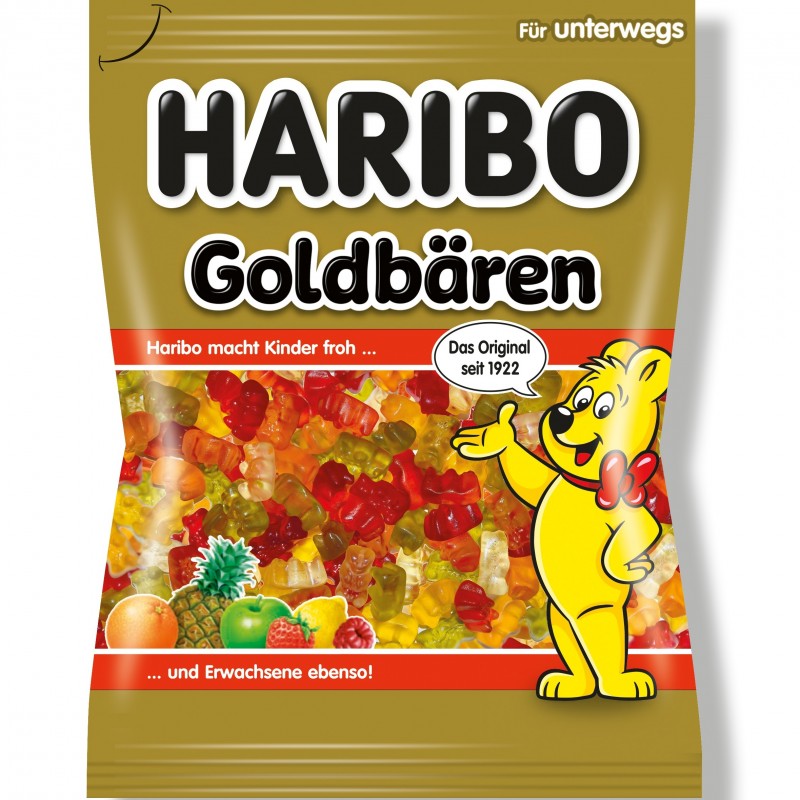 Notre numéro 1 au rayon confiserie ! Des générations les aiment et ont grandi avec eux. Les oursons d'or Haribo sont depuis plus de 100 ans notre produit à succès dans les délicieuses saveurs fruitées ananas, pomme, fraise, framboise, orange et citron. Ce sachet pratique de 100 g d'oursons d'or est le complément parfait pour les voyages.