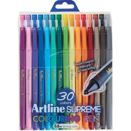 Feutre de coloriage ARTLINE® Supreme Triangular Colouring Pen pointe feutre en PE, corps triangulaire, encre à base d'eau, encre infalsifiable, sans xylène, pour écrire, dessiner des esquisses, hachurer sur des cartes, lettres et illustrations, non rechargeable, largeur de trait 1 mm.