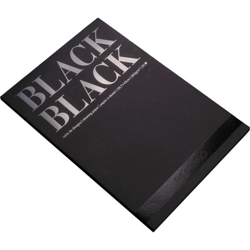 Bloc de papier à dessin FABRIANO Black Black papier à dessin noir, 300 g/m2, collé, sans acide et chlore et sans métaux lourds nocifs, convient aux pastels, crayons de couleur, marqueurs et peintures acryliques, 20 feuilles.
