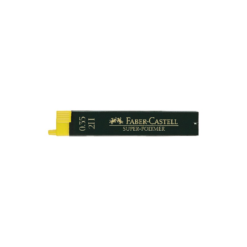 Mines graphite FABER-CASTELL Super-Polymer extrêmement solides, excellentes propriétés de glissement, trait noir intense saturé en couleur, recharge propre et facile grâce à une aide de recharge pratique. Tube de 12 mines.