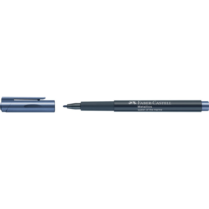 Marqueur FABER-CASTELL Creative Studio pointe ogive, clip, pour peindre et écrire sur presque toutes les surfaces, p. ex. papier, carton, métal, plastique, verre et pierre, encre à base d'eau, sans odeur, résiste à l'abrasion et aux éclaboussures d'eau, résistant à l'eau après fixage au four à 160°C (ne résiste pas au lave-vaisselle), ne traverse pas le papier, non rechargeable, largeur de trait 1,5 mm. métallisé