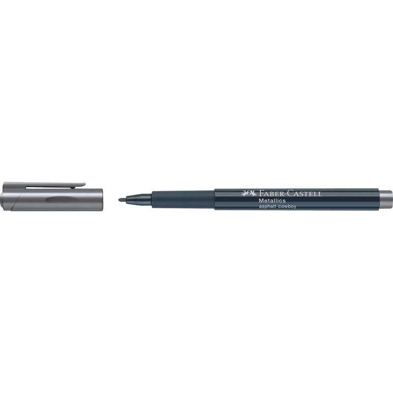 Marqueur FABER-CASTELL Creative Studio pointe ogive, clip, pour peindre et écrire sur presque toutes les surfaces, p. ex. papier, carton, métal, plastique, verre et pierre, encre à base d'eau, sans odeur, résiste à l'abrasion et aux éclaboussures d'eau, résistant à l'eau après fixage au four à 160°C (ne résiste pas au lave-vaisselle), ne traverse pas le papier, non rechargeable, largeur de trait 1,5 mm. métallisé