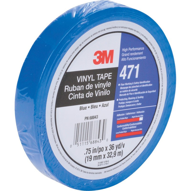 Ruban adhésif 3M(TM) vinyle 471 en PVC, résiste à l'abrasion, adaptable, flexibilité et extensibilité élevées, pour travaux de revêtement généraux, pour fermer les surfaces rondes ou irrégulières, pour signaliser, marquer et étanchéifier, convient aux travaux de décoration intérieure généraux, résiste aux températures jusqu'à +75°C.