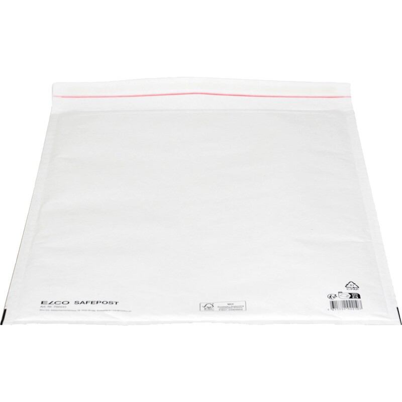 Pochette matelassée de bulles ELCO Safepost en papier et plastique, pochette d'expédition blanche avec sachet bulles pour l'expédition d'objets fragiles, système bag-in-bag avec pochette intérieure en plastique, amovible, pochette extérieure en papier, avec fermeture adhésive. Durabilité eco:plus: construit pour être démontable, recyclable. Certification: FSC.