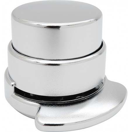 Agrafeuse sans agrafes WEDO® en ABS de qualité supérieure, aspect chrome, une languette en papier découpée par l'agrafeuse est insérée automatiquement et en une seule opération dans une fente également prédécoupée, capacité d'agrafage 0,4 mm (4 feuilles).