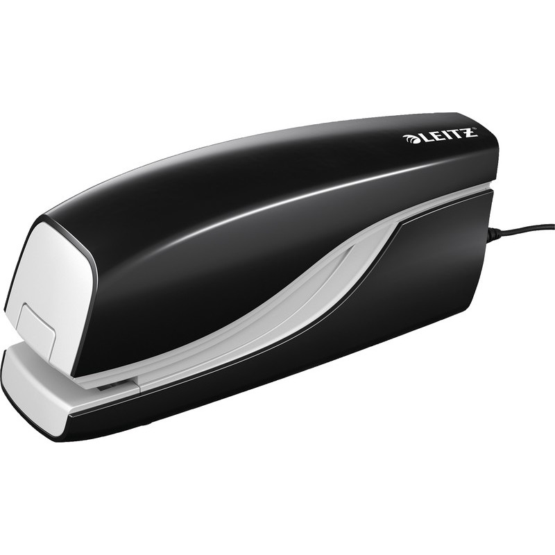 Agrafeuse électrique LEITZ® série NeXXt 5532 en métal avec boîtier en ABS, grande capacité, utilisation à une main, mécanisme de chargement à ressort, agrafe sans bourrage, capacité du magasin: 100 agrafes, capacité d'agrafage env. 1 mm (10 feuilles). Agrafes: e1 (livrée avec 1000 agrafes). Adaptateur secteur fourni. Garantie: 3 ans si utilisée avec des agrafes LEITZ®. Prix incluant la TAR. Certification: GS.