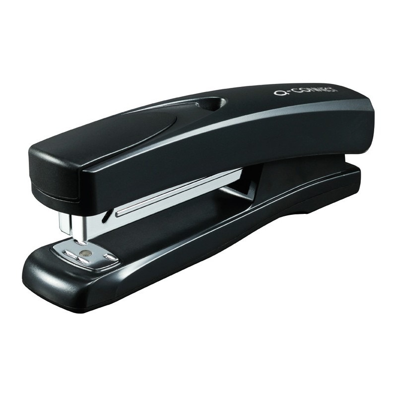 Agrafeuse Q-CONNECT® métal Plus en métal, avec mécanisme de chargement par le haut, enclume réglable pour agrafage ouvert ou fermé, capacité d'agrafage env. 2 mm (20 feuilles), profondeur d'engagement 85 mm. Agrafes: 24/6 et 26/6.