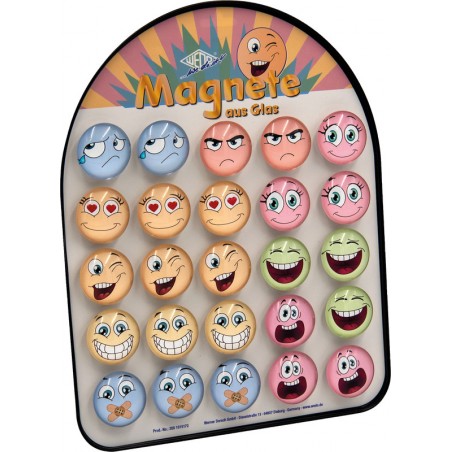 Aimant WEDO® rond sur tableau magnétique, surface en verre, bombée (effet 3D), 9 motifs assortis. Dimensions: Ø 35 mm. pastel
