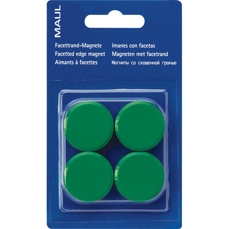 Aimants avec bordure à facettes MAUL pro sur carte blister corps en Luran incassable, surface légèrement érodée, bordure à facettes polie fin, le noyau d'aimant est fixé fermement par une colle spéciale, dessous laqué assurant une bonne protection des surfaces aimantées. aimants ronds, Ø 30 mm, H 10 mm, force d'adhérence 600 g, blister de 4 pièces
