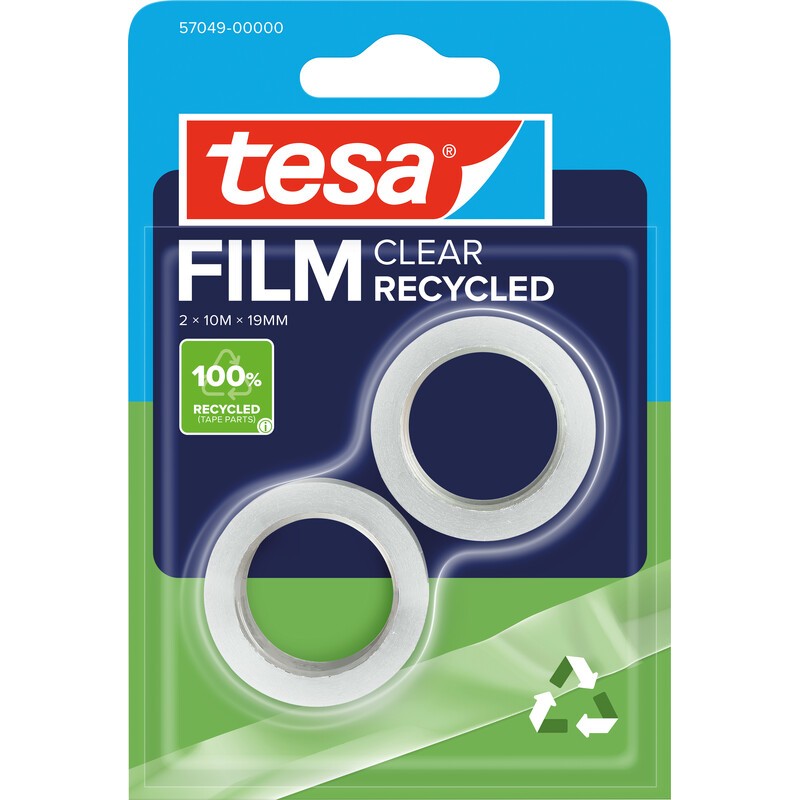 Ruban adhésif TESA® Film eco & clear ecoLogo® film support et bague 100% en plastique recyclé, qualité transparente, pratiquement invisible sur la plupart des surfaces, fort pouvoir adhésif, déroulement régulier et silencieux, résistance élevée au vieillissement, sans solvant. Durabilité eco:plus: composant recyclé, emballage respectueux de l'environnement.