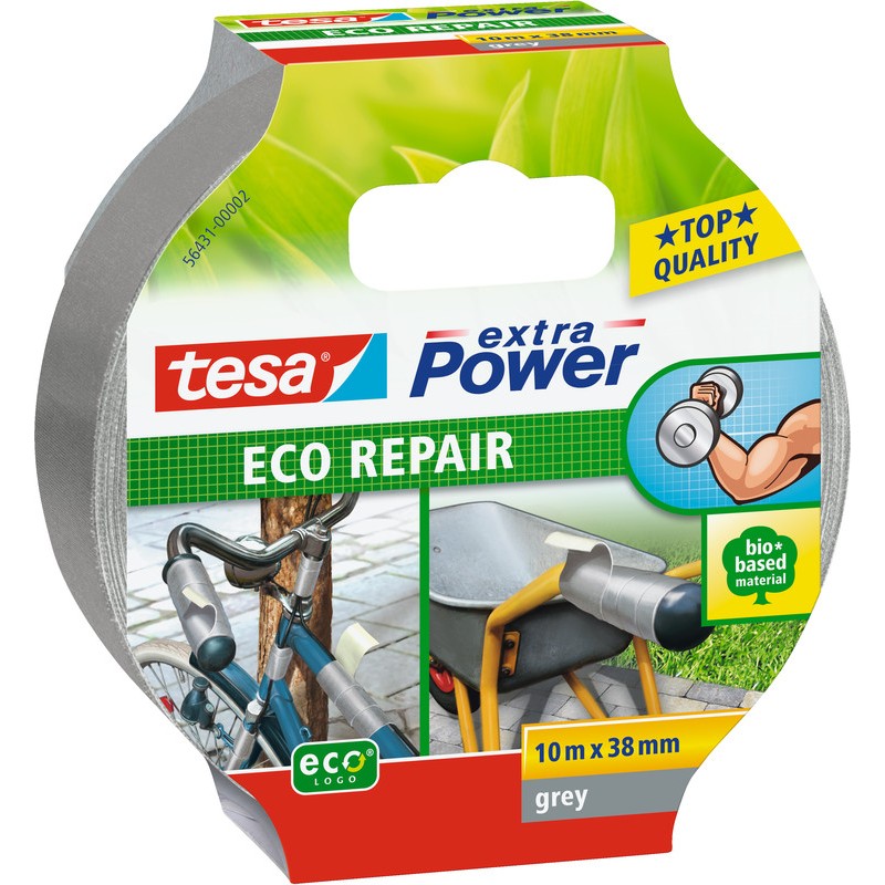 Ruban toilé TESA® extra Power Eco Repair ruban toilé extra fort, fibres naturelles et durables, idéal pour fixer, réparer, lier, renforcer, marquer, bricoler, etc., résistance élevée aux intempéries, pour applications intérieures et extérieures, résistant à la déchirure mais se découpe à la main, supporte l'écriture, fabriqué à 64% à partir de ressources renouvelables, adhésif en caoutchouc naturel sans solvant. eco:plus: composant recyclé, emballage respectueux de l'environnement. 38 mm x 10 m
