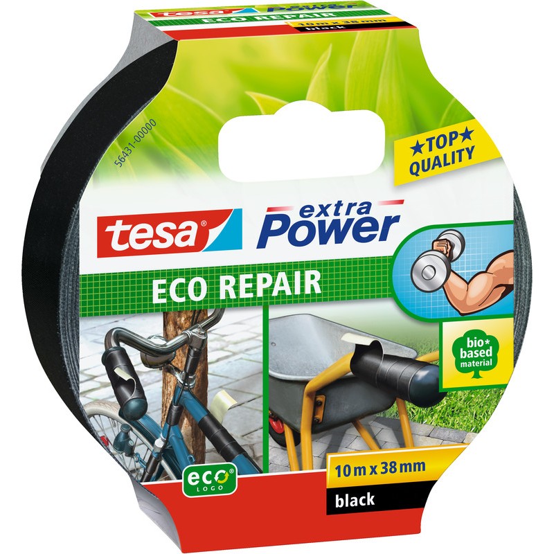 Ruban toilé TESA® extra Power Eco Repair ruban toilé extra fort, fibres naturelles et durables, idéal pour fixer, réparer, lier, renforcer, marquer, bricoler, etc., résistance élevée aux intempéries, pour applications intérieures et extérieures, résistant à la déchirure mais se découpe à la main, supporte l'écriture, fabriqué à 64% à partir de ressources renouvelables, adhésif en caoutchouc naturel sans solvant. eco:plus: composant recyclé, emballage respectueux de l'environnement. 38 mm x 10 m