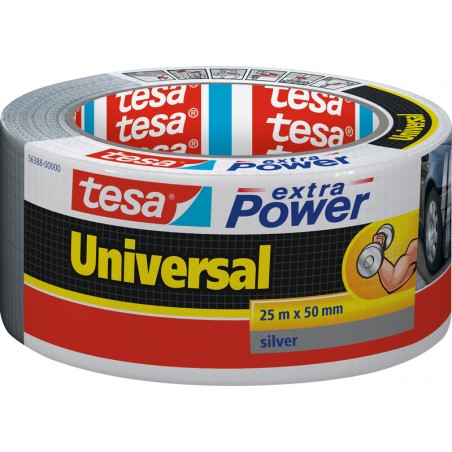 Ruban toilé TESA® extra Power Universal toile en ouate de cellulose plastifiée fabriquée à 67% en PET recyclé (rPET), adhésive, pour les travaux manuels, la fixation, la réparation, le cerclage, le renfort, le marquage, etc., résultats propres et professionnels, résistance élevée aux intempéries, pour des applications intérieures et extérieures, résistante à la déchirure, mais se découpe à la main, inscriptible. 50 mm x 25 m