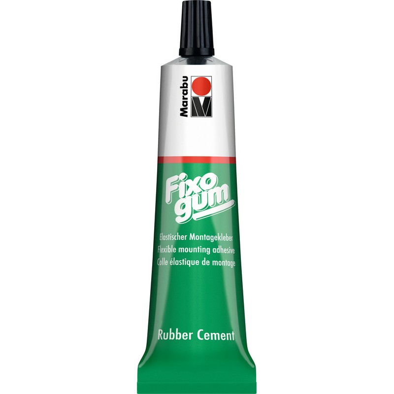 Colle MARABU Fixogum colle élastique exempte d'acide à base de caoutchouc naturel et de solvants organiques, pour les montages dans les arts graphiques et le bricolage, idéale pour coller les photos, colle le papier, carton, feuilles plastiques et les matériaux similaires, pour un collage détachable ou durable, les parties collées entre elles ne se déforment pas, le papier ne gondole pas, les résidus de colle s'éliment facilement en frottant avec les doigts.