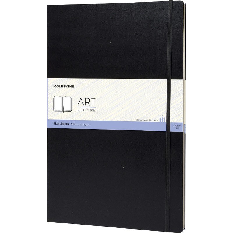 Carnet de croquis MOLESKINE® Art Collection fermeture par élastique, coins arrondis, papier croquis de couleur ivoire sans acide, 165 g/m2, résistant à la gomme, convient pour les crayons graphite et de couleur, stylos à bille, pastels, fusain, etc., ruban marque-page, pochette intérieure à soufflet en carton et textile. Durabilité eco:plus: teneur en déchets recyclés après utilisation max. 50%. Certification: FSC. A3 29,7 x 42 cm, couverture rigide, 96 pages