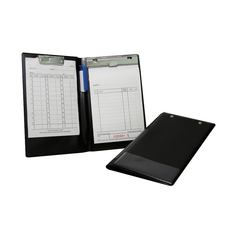 WEDO® Kassenblockhülle aus Karton mir Folienüberzug, mit Einstecktasche für Kugelschreiber. Masse: B 120 x H 150 mm.