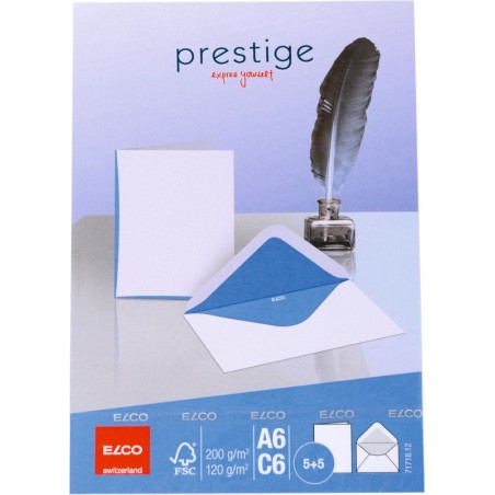 Cartes doubles avec enveloppes ELCO Prestige cartes doubles: en carton blanc, 200 g/m2, légèrement satiné, bord coloré sur deux côtés, enveloppes: en papier blanc 120 g/m2, impression intérieure en couleur, rabat triangulaire gommé, façon L. Cello-Zip de 5 sets. Durabilité eco:plus: recyclable. Certification: FSC.